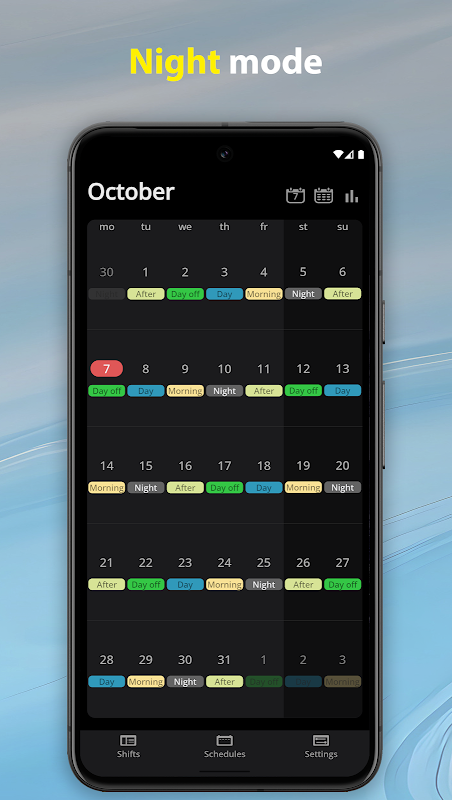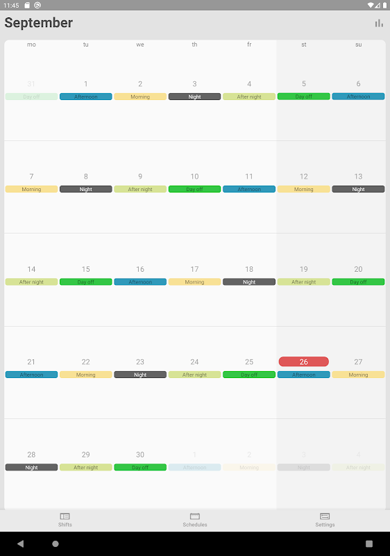 شیفت ساده به شما کمک می کند تا برنامه کاری خود را نشان دهید، مهم نیست که الگوی کاری شما چقدر پیچیده است. هم برای برنامه های مکرر و هم برای برنامه های بدون شیفت های تکراری مناسب است. تنظیمات پیچیده ای وجود ندارد و همه چیز ساده و مختصر است. یکی از مزیت های اصلی Simple Shift امکان نمایش همزمان تا 4 زمان بندی مختلف در تقویم با قابلیت مخفی سازی و نمایش سریع آنهاست. تعطیلات، روزهای تعطیل، رویدادهای مختلف را علامت گذاری کنید. ساعت کاری و درآمد خود را پیگیری کنید. ساعت زنگ دار تعبیه شده شما را از خواب زیاد دور نگه می دارد. و مهمتر از همه - در اینجا هیچ تبلیغی نخواهید یافت.