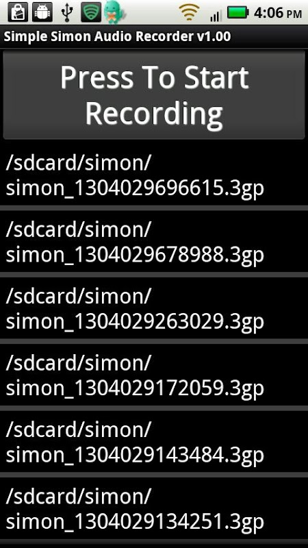 ضبط صوت و صدا ساده سیمون - ساده ترین راه برای ضبط صدای صوتی. کدگذاری پس زمینه بسیار کارآمد برای پرونده های کوچک قابل کنترل اکنون می توانید با فشار دادن و ضبط یک صدا (فشار طولانی) ، پرونده ها را نیز به اشتراک بگذارید.