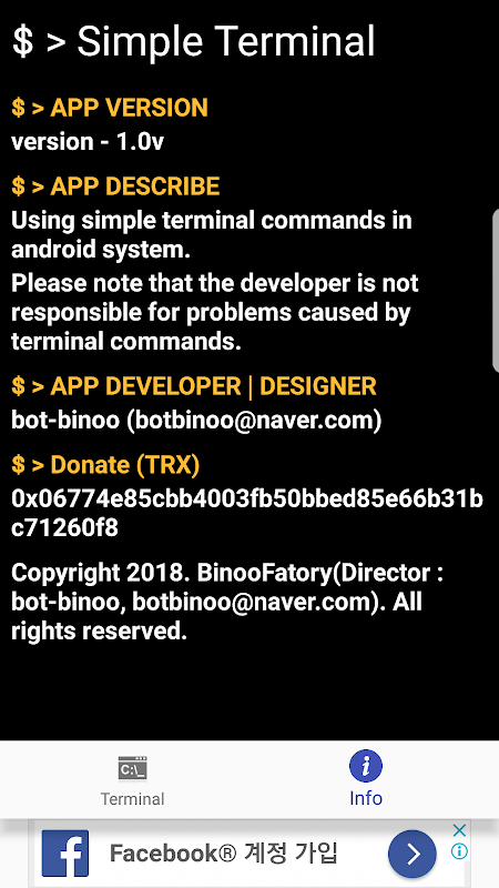 * ترمینال دستور است جعلی است. همچنین برای مشکلات ناشی از کنترل کاربر مستقیم بر دستورات ترمینال آندروید، توسعه دهندگان هیچ مسئولیت نمی پذیرد.