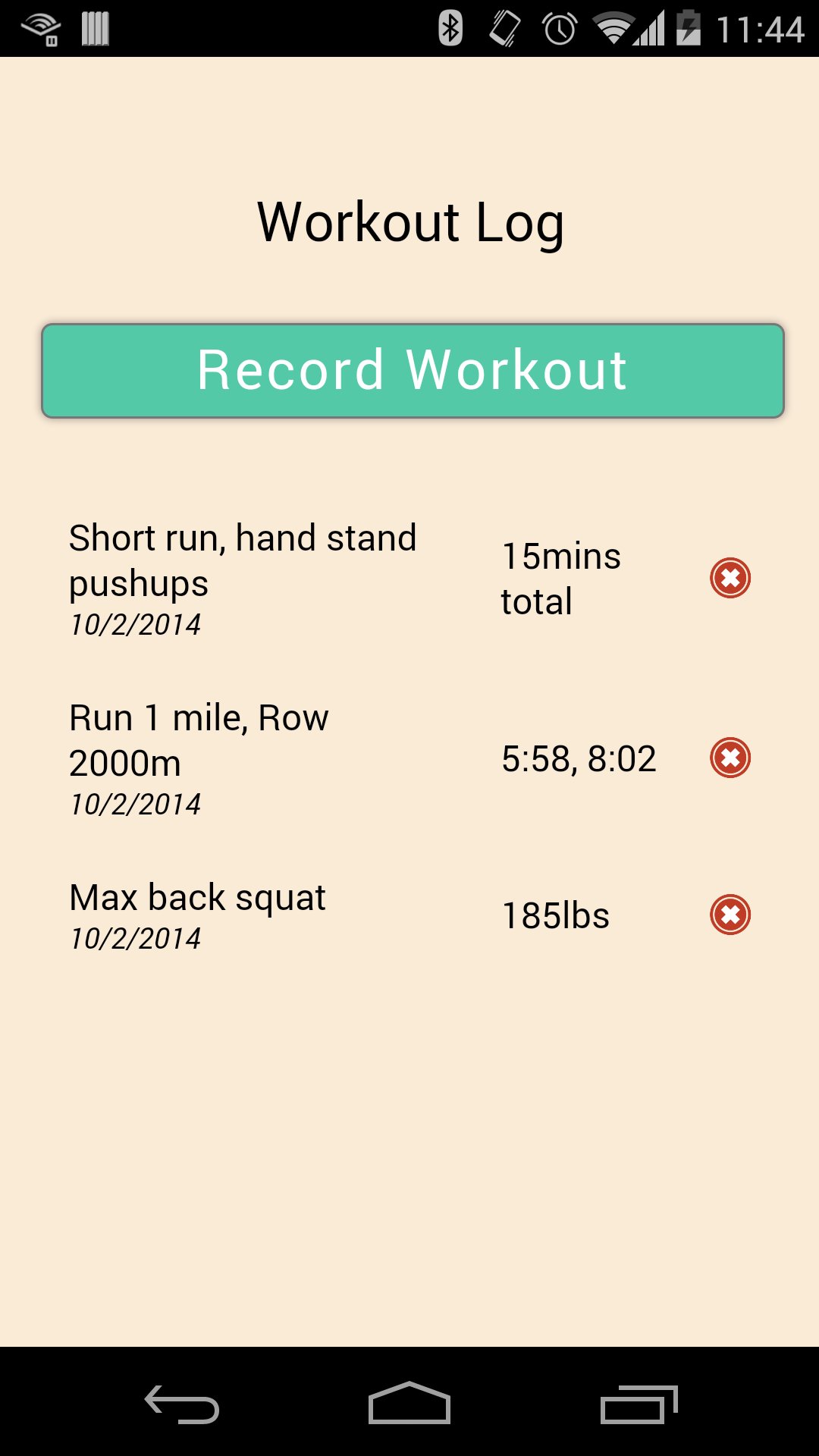 Unlike other workout programs Simple Workout Log doesn't force you to pre-program in your workout routine or enter in certain types of data (like reps or time). It simply tracks whatever you give it. All it needs is a description of the workout and the results you want to track. You can put whatever you want into these fields. Simple Workout Log will automatically tag the workout with the date it was entered into the app.