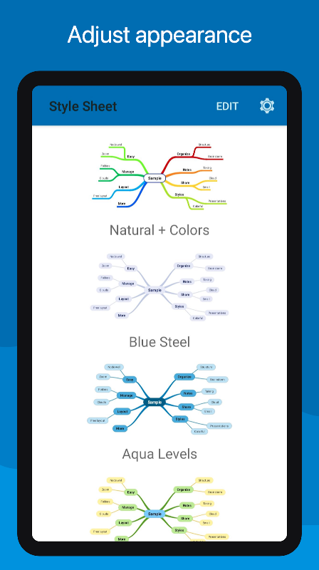 SimpleMind برای هر دو تلفن و قرص بهینه شده است. برخی ویژگی ها تنها در نسخه های اخیر بیشتر از آندروید موجود است.