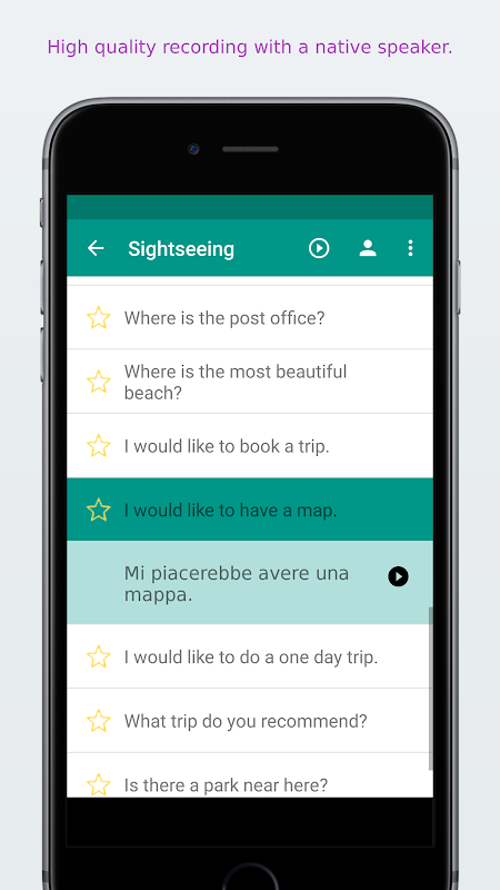 همه جملات و لغات ایتالیایی برای شما هم به صورت صوتی و هم به نوشتار ایتالیایی آماده شده است. این فایل های توسط یک شخص بومی هلندی ضبط شده است