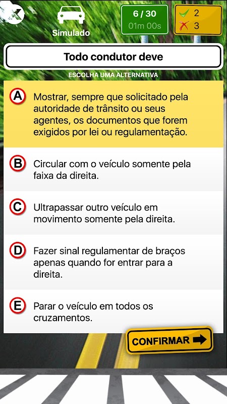 محتوای این برنامه توسط ما و بر اساس کد ترافیک برزیل توسعه داده شده است. سوالات ارائه شده در آزمون ممکن است دقیقاً مشابه سوالات موجود در اینجا نباشد.