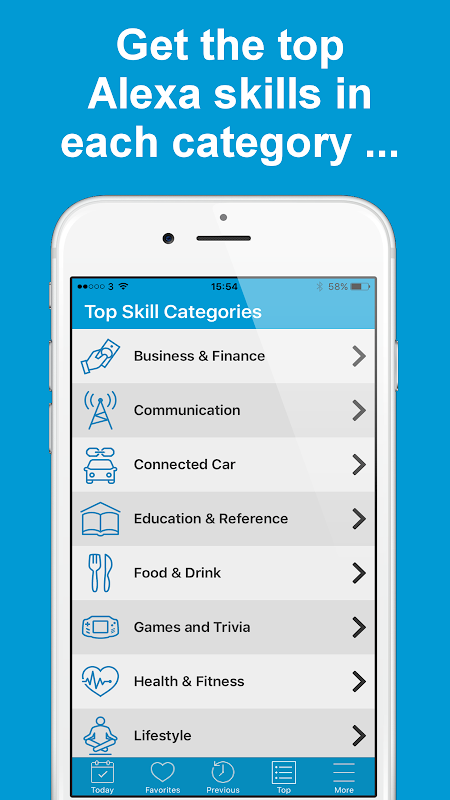 Browse over 20 categories of the best skills you need for your Alexa device, and you can enable the Alexa skill directly from the App into your Alexa device.