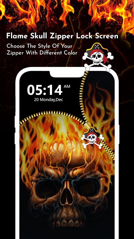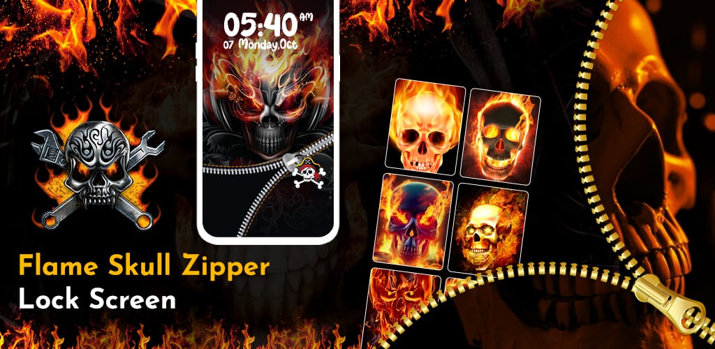 ** Burning Skull Zipper lock screen 2022 protect your privacy