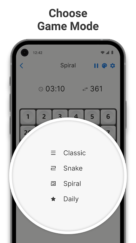 • 3 نوع بازی برای شما: "Classic"، "Snake" و "Spiral"