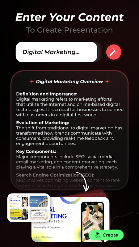 ایدهها، طرحها یا موضوعات را با استفاده از هوش مصنوعی به اسلایدهای کاملاً طراحی شده به سبک پاورپوینت تبدیل کنید. فقط یک موضوع را تایپ کنید یا محتوای خود را جایگذاری کنید - SlideCraft بقیه کارها را انجام می دهد.