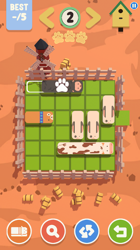 Your objective is to make your main piece, a dog, reach the exit, moving other animals out of his way.