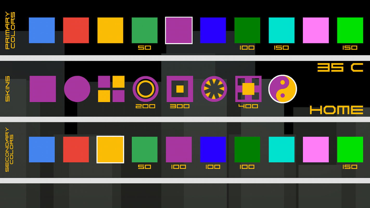 Controls are simple and intuitive, you just swipe up or down to progress through the level; to avoid the obstacles that are constantly coming towards you. Throughout the level you are able to collect coins which are used to purchase new colors and skins.