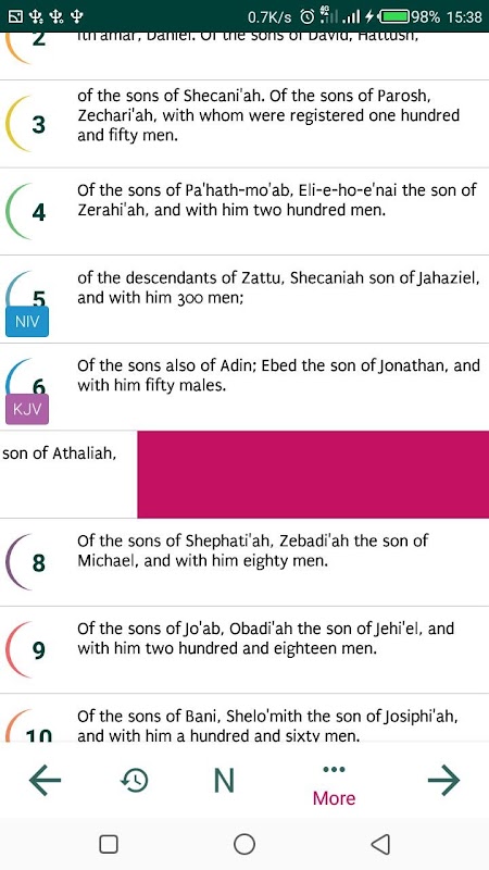 نسخه مقدس کینگ جیمز نسخه برای آندروید با نسخه های NIV و RSV بیش از حد.