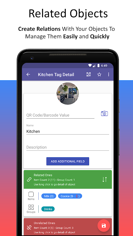می توانید اسامی اشیاء ، تصاویر ، مقادیر بارکد و اطلاعات اضافی آنها را به سیستم اضافه کنید. هیچ محدودیتی برای تعداد اطلاعات اضافی به اشیاء شما وجود ندارد.