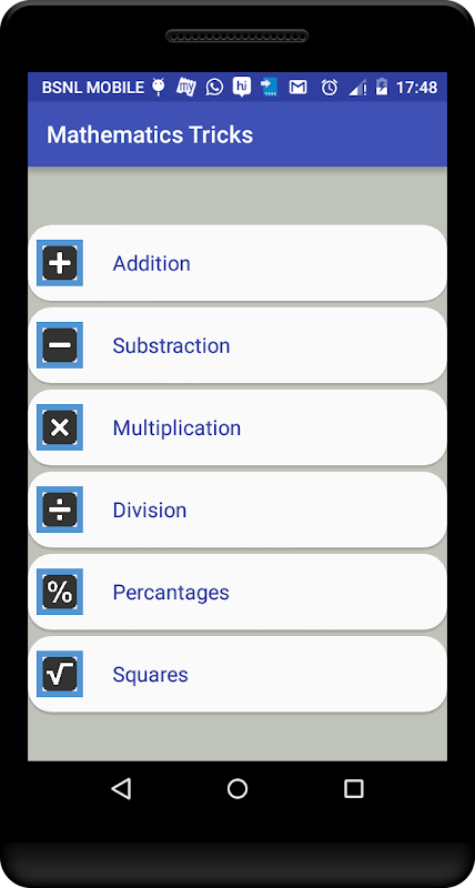 > This application, Smart Math Tricks is totally free and is compatible with all devices. This is very helpful for all kinds of competitive exams.