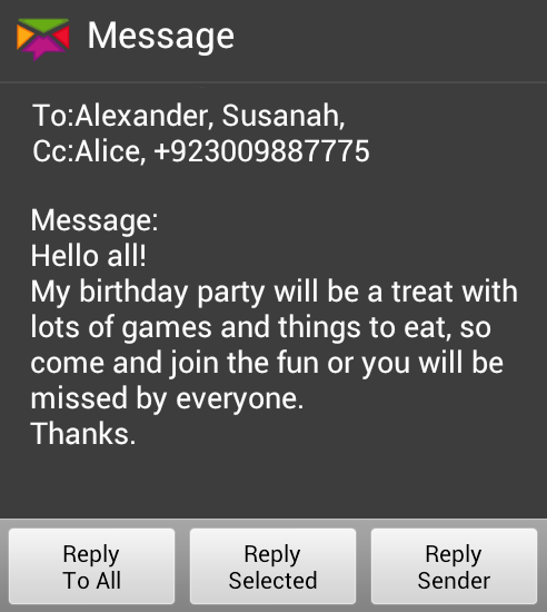 Choose Who You want to reply: Reply Sender, Reply All, or Reply Selective People or even Forward the message with utmost ease.