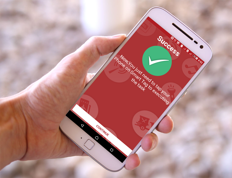 NFC هوشمند برنامه به طور خودکار وظایف تنها با ضربه زدن بر روی تلفن های هوشمند برچسب NFC است.