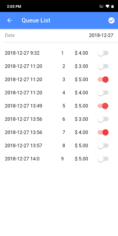 این نرم افزار را می توان برای چاپ تعداد صف با قیمت مورد (بیشتر برای خدمات تمیز کردن ماشین) استفاده می شود. شماره صف به روز تنظیم می شود. تا پایان روز کاربر می تواند گزارش خلاصه را ببیند.