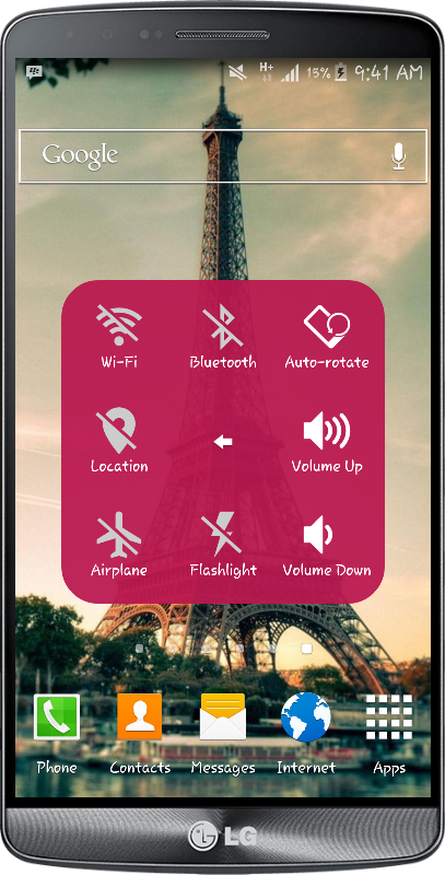 ✦ Quick toggle settings: quick access App as Call, SMS, Clock, YouTube, Setting, Flashlight, Games and all Apps installed