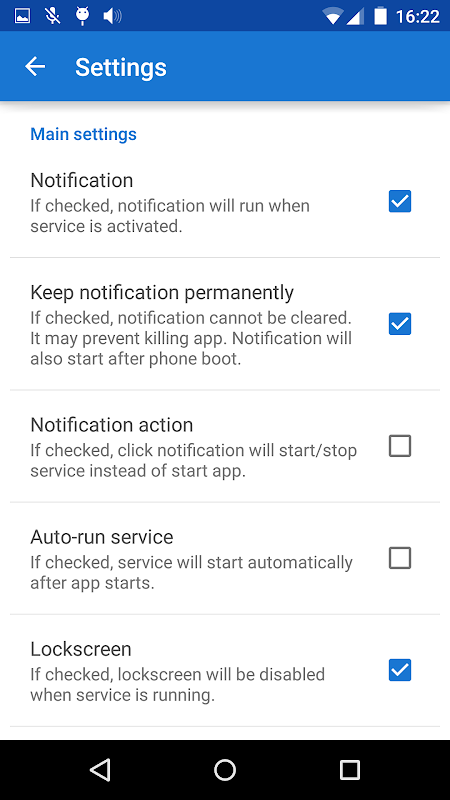 This app supports bluetooth headset (Android 3.0+ is required). You can run/stop service by clicking Bluetooth headset button!