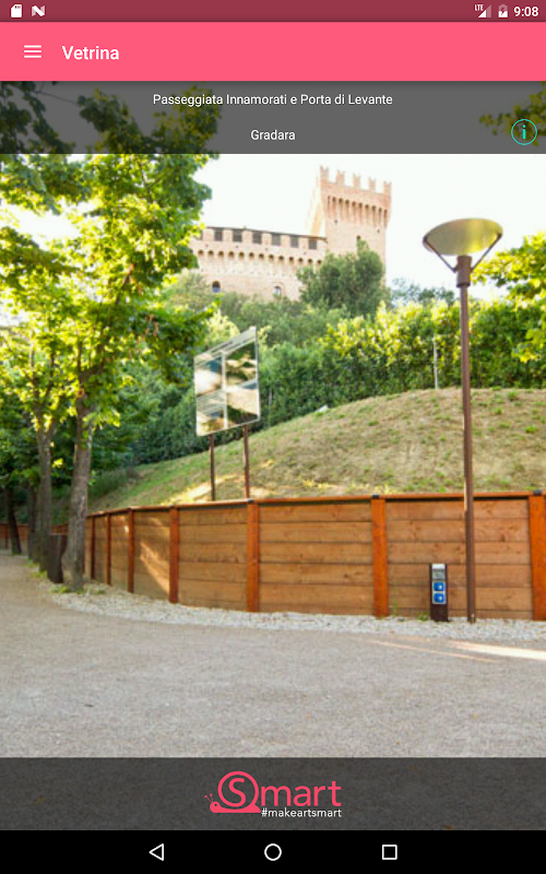 Thanks to the interaction with the app and with iBeacons you can receive contents about each structure affiliated with SMART in a totally automatic way, without interacting directly with the artworks. In order to receive notifications containing informations about all the artworks next you, the app is simply needed to be running. Each notification can be consulted again through history and each content can be saved as favorite.