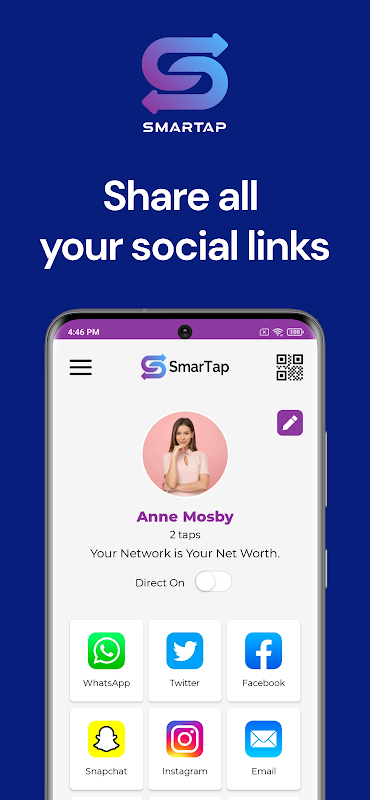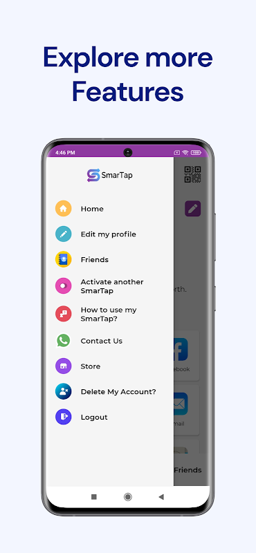 برای به اشتراک گذاشتن یک نمایه، به سادگی روی تگ NFC روی گوشی دارای NFC ضربه بزنید یا به هر کسی اجازه دهید کد QR درون برنامه شما را اسکن کند. مطمئن شوید که گوشیهای Android NFC را در تنظیمات روشن کرده باشند. دیگران برای دریافت اطلاعات شما به برنامه یا SmarTap نیاز نخواهند داشت.