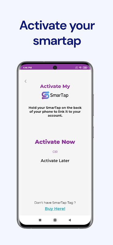 برای شروع، تگ SmarTap خود را در پشت تلفن خود نگه دارید تا آن را فعال کرده و به حساب خود پیوند دهید. برچسب شما اطلاعات شما را ذخیره می کند و آماده اشتراک گذاری است. بهترین چیز این است که افراد دیگر برای دریافت اطلاعات شما به برنامه نیاز ندارند.