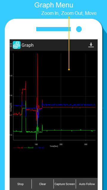 ★ GRAPH: صفحه نمایش گراف با 'توقف، پاک کردن، جذب روی صفحه نمایش، خودکار دنبال، بزرگنمایی، کوچکنمایی' ویژگی های.