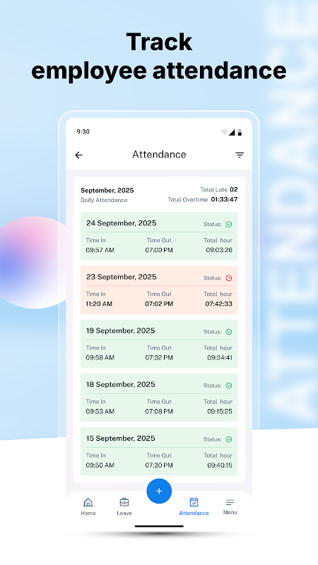 حضور و غیاب کارکنان را به طور دقیق از طریق سیستم های دیجیتال ردیابی کنید، الگوهای وقت شناسی را نظارت کنید، و گزارش های جامع حضور و غیاب را برای تجزیه و تحلیل ایجاد کنید.
