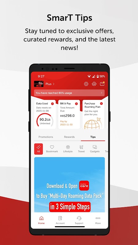 برنامه کاملاً جدید ارتقا یافته CARE به کاربران امکان می دهد رابط کاربری خود را سفارشی کنند، از پیشنهادات انحصاری، جوایز انتخاب شده و آخرین اخبار به روز بمانند. مشتریان SmartTone حتی می توانند از مجموعه ای از خدمات مراقبتی مانند صف بندی از راه دور، اجاره پاوربانک رایگان، رزرو خدمات انتقال داده و موارد دیگر لذت ببرند!
