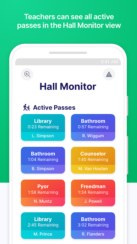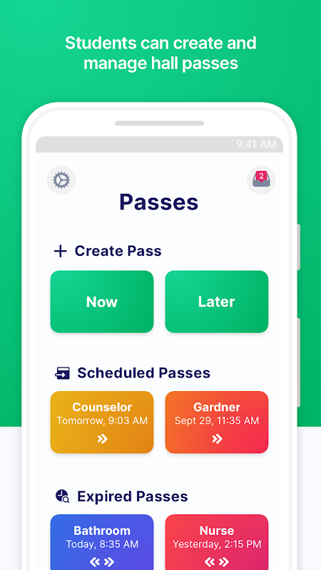 SmartPass Mobile به شما امکان می دهد تا به راحتی گذرگاه های سالن را در سیستم Pass Hall Digital Digital Pass ایجاد و مدیریت کنید. دانش آموزان می توانند به سرعت کارتهای عبور خود را در دستگاههای شخصی خود ایجاد کنند و معلمان / مدیران می توانند پاسهای فعال سالن را در ساختمان خود کنترل کنند.