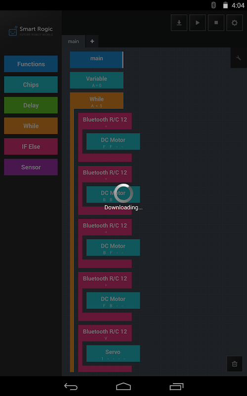 این برنامه می تواند از دستگاه های هوشمند است که ساخته شده است در بلوتوث به ربات دانلود