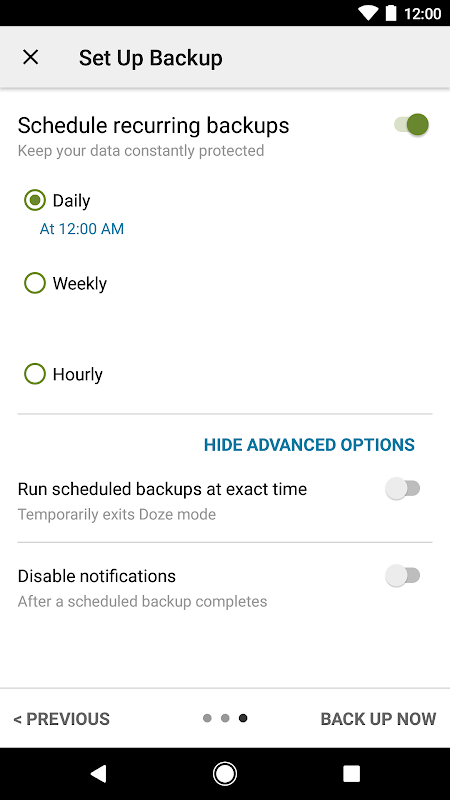 - انتخاب یک زمان برنامهریزیشده برای پشتیبانگیری خودکار.