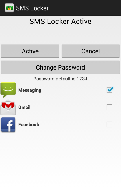 SMS Lock (also Message Locker) lists all message-receiving-functioned softwares of the cell phone that you can make decisions to lock or unlock each of them.