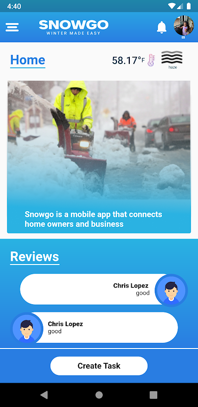 Easy Connection: SnowGo seamlessly connects homeowners with snow removal professionals in their area. Finding the right person to handle your snow removal needs has never been easier.