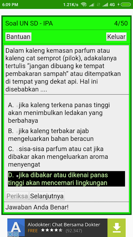 Aplikasi Soal-Soal Kelas 6 SD 2020 - Terbaru adalah sebuah Aplikasi kumpulan Soal-soal, Kisi-kisi dan Soal Try Out UN SD disertai Pembahasan dan jawaban yang lengkap. Aplikasi ini berbentuk game dengan pilihan ganda (multiple choice) dengan tampilan sederhana dan ringan agar mempermudah dalam metode pembelajaran tapi tidak memakan banyak memori, setiap soal merupakan soal dari Ujian Nasional (UN) SD tahun sebelumnya dan Kisi-kisi soal tahun 2020. Di akhir game, anda akan mendapatkan skor beserta detail jawaban yang anda pilih dan jawaban yang benar.