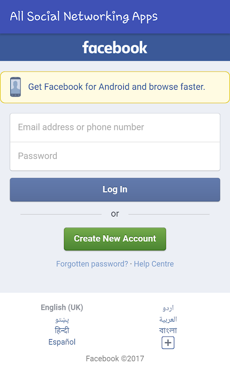 Social All in One provide you all social apps in just one app and with one click