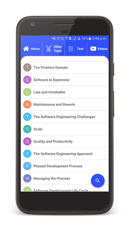 برنامه مهندسی نرم افزار فراهم می کند نسخه سریع و اشاره به موضوعات مهم مانند دقیق یادداشت فلش کارت، آن را می سازد آن را آسان و مفید برای دانش آموز و یا یک حرفه ای برای پوشش برنامه درسی به سرعت قبل از امتحانات و یا مصاحبه برای شغل. اطلاعات در مورد توسعه نرم افزار برنامه نویسی کامپیوتر در یک راه آسان.