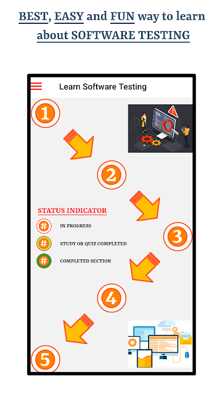 این برنامه یک منبع عالی برای یادگیری در مورد تست نرم افزار است. این برنامه به گونه ای طراحی شده است که کاربران را با مطالعه برای مدت زمان بسیار کوتاه، درک کاملی از سوالات رایج تست نرم افزار ایجاد کند. قابلیت های صوتی و نشانک گذاری در سراسر برنامه در حالت های فصل، بخش، حالت مطالعه و مسابقه در دسترس است.