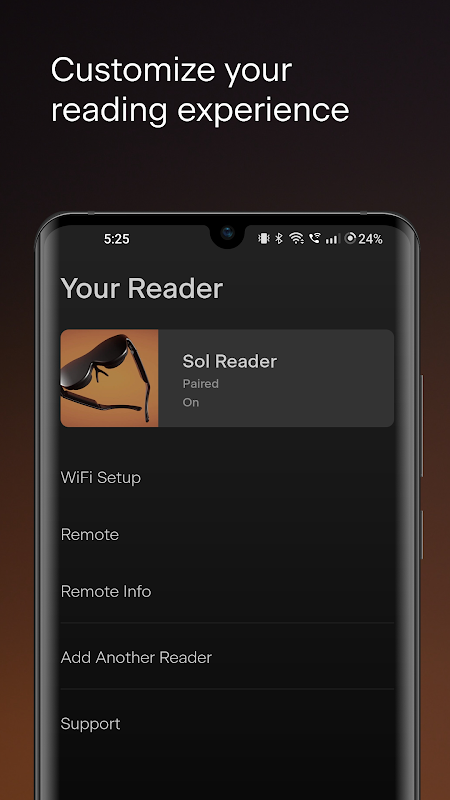 برنامه موبایل Sol به شما امکان می دهد به طور یکپارچه Sol Reader خود را مدیریت کنید. کتابها، مقالات و خبرنامههای جدید را به Reader خود تحویل دهید. قدیمی ها را بایگانی کنید به تنظیمات، حسابها و پشتیبانی فنی در یک مکان دسترسی داشته باشید.