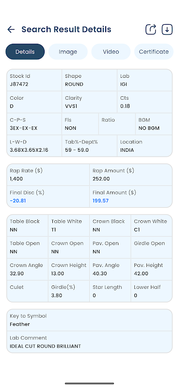 اکنون دانلود کنید تا الماس های گشاد تایید شده را کاوش کنید، مشخصات را مقایسه کنید و به راحتی خریدهای آگاهانه انجام دهید.