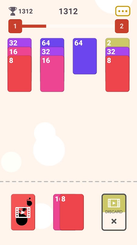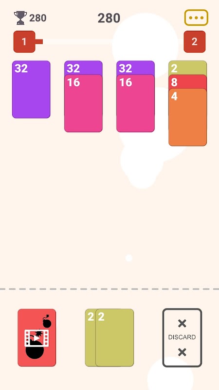 ادغام اعداد: کارت ها را با اعداد منطبق ترکیب کنید تا کارت هایی با ارزش بالاتر درست کنید، درست مانند سال 2048.