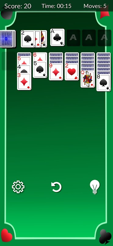 بین منطق، شانس و اسطوره، Solitarius یک بازی یک نفره کلاسیک است که در آن هدف این است که کارت ها را از آس به پادشاه با کت و شلوار مرتب کنید.