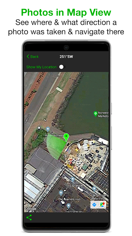 + جهت و موقعیت عکس را در نمای نقشه مشاهده کنید و در آنجا حرکت کنید.