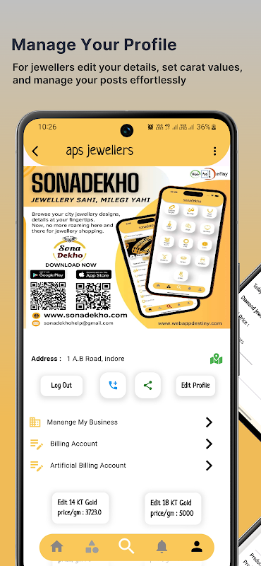 सोनादेखो ज्वैलर्स को एक डेडिकेटेड दान करता है، जिसका उपयोग दुकान पर आने कों या मौजूदा ग्राहकों के लिए घर बैठ लर्स के डिजाइन ब्राउज़ कर सकते हैी री की डिटेल्स के साथ जैसे कैरट ،वजन ، प्राइस और अन्य। .