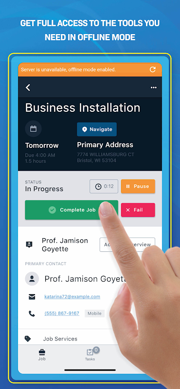 یک مرور کلی از مشاغل برنامه ریزی شده خود برای روز را مشاهده کنید و از راهنمای مسیر GPS برای رسیدن به موقع و ایجاد اولین برداشت عالی استفاده کنید. با استفاده از پیمایش داخلی ، در وقت صرفه جویی کرده و از عقب ماندگی های غیرضروری جلوگیری کنید.