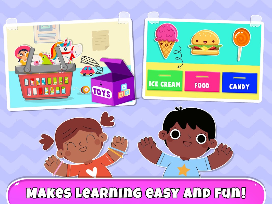 🌟 بازیهای مرتبسازی تعاملی: بچههای شما از چالشهای مرتبسازی مختلف لذت خواهند برد که مهارتهای شناختی آنها را افزایش میدهد. اشیاء رنگارنگ را در دستههای مناسب طبقهبندی کنید - چه حیوانات، میوهها یا وسایل نقلیه - بچهها هر بازی را دوست خواهند داشت!
