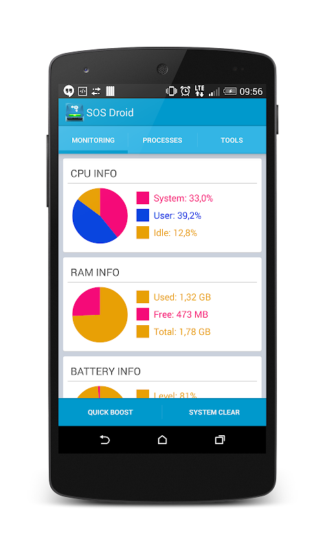 SOS خوانده نمایش وضعیت CPU، حافظه، و باتری را در زمان واقعی، اجازه می دهد تا شما را به نظارت بر عملکرد سیستم.