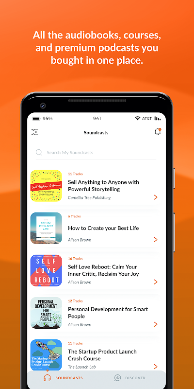 * به همه کتابهای صوتی ، دوره های صوتی ، آلبوم ها و پادکست هایی که از ناشران با قدرت Soundwise خریداری کرده اید گوش دهید.