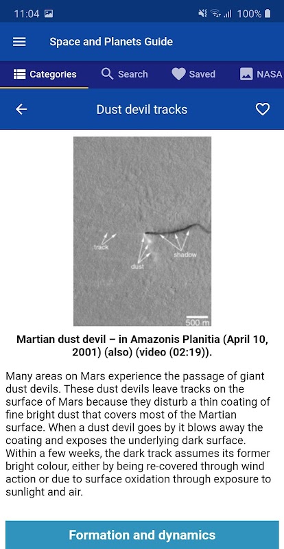A Space reference glossary is also in the app and provides detailed explanations of space, solar system and physics terms. Very useful for learning purposes.