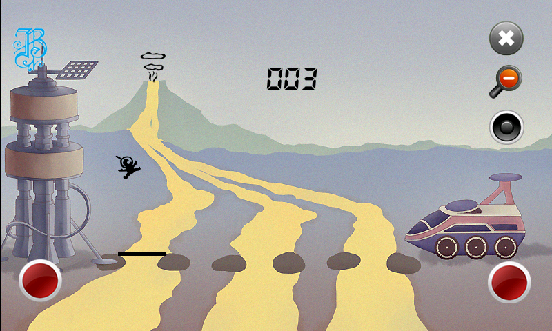 The game takes place on some planet where the eruption of the volcano base astronauts was cut off from the conveyor three lava flows. There is a bridge that can be flown through only one of the three lava flow. From the building of the base alternately jump astronauts to get to the transporter for this they should overcome all 3 streams of lava. The goal - to use the "Left and" Right "to rearrange the bridge under each astronaut, overcoming a lava flow. Otherwise, if the astronaut fails, the player will receive a penalty point. Upon receipt of these three penalty points the game ends. Upon reaching 120, 250 and 500 points penalty is canceled. Upon reaching 999 points the game goes on a score of 0.