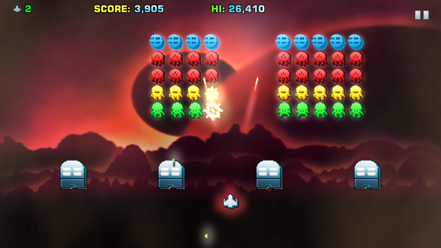 Arcade mode features fast paced action with regenerating aliens and power-ups to even the odds. There’s also a Classic mode is also available for those wanting a slower paced more traditional game.