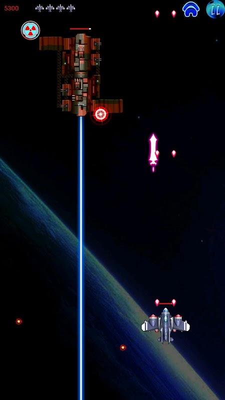 This is a classic space shooter game, it has 8 levels, the next level can be automatically unlocked after you win a leavel . The game is easy to control by touch and move anywhere of screen. The game has a variety of reward buoys and weapon upgrades. The secret of the game is to upgrade the appropriate weapon firepower as soon as possible, because the enemy will be more and more faster and stronger. When fighting monsters, try to use laser swords, thunderstorms and other weapons of mass destruction, and make rational use of armor time.